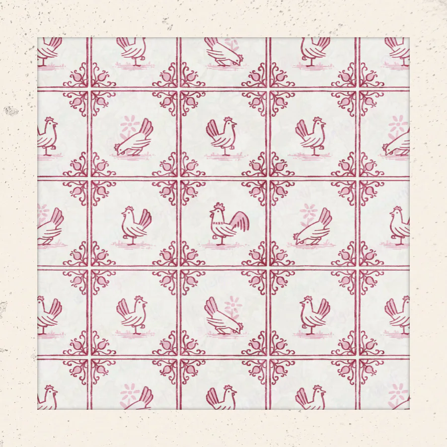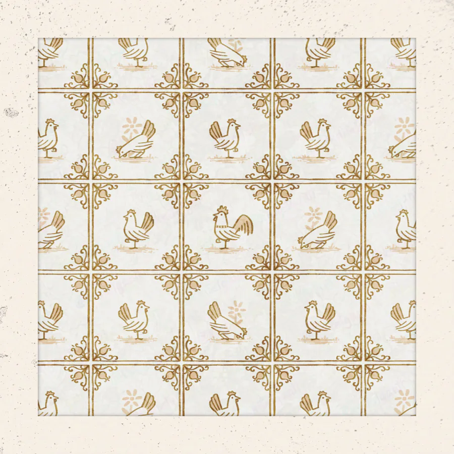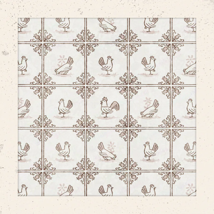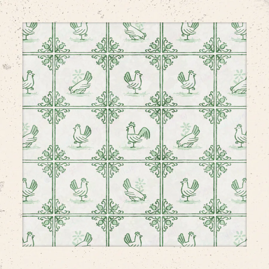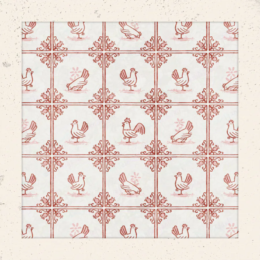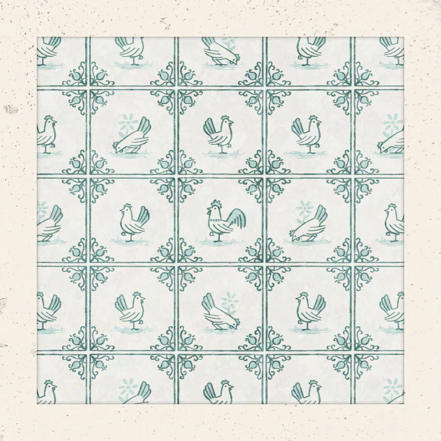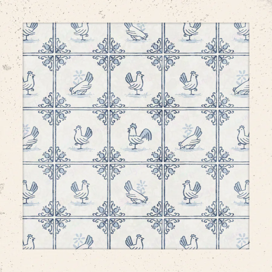 Here's a fun one I made for Spoonflower's delft tiling surface pattern design challenge. Of course I had to theme my entry around chickens, because... I mean, come on... Chickens!