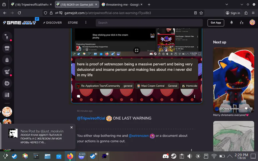 here is proof of xetrenozen being a massive pervert and being very delusional and insane person and making lies about me i never did in my life