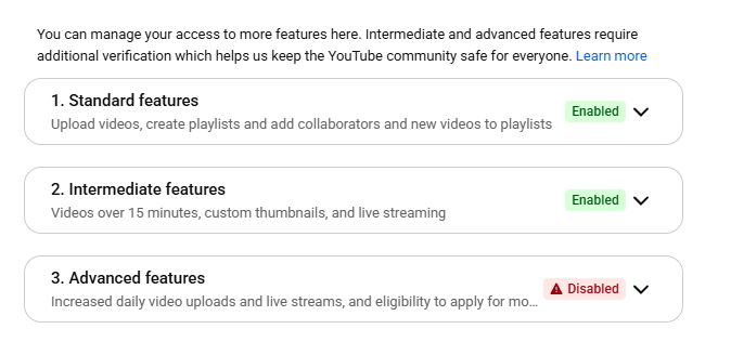 My advanced features on YouTube have been disabled chat :(