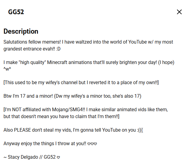 https://www.youtube.com/watch?v=NLys6Cz6GaY Say hello to the official GG52 channel trailer!! You can also go check it out if you want lmao :DD