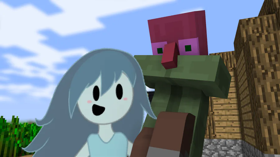 A wholesome lil photo of Spooky carrying her villager boyfriend (Chase) :33