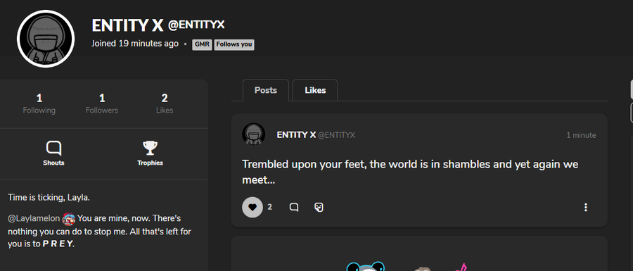 So here's the thing for people who're curious who the entity is, and NO he isn't the stalker, he is for an ARG I'm making: