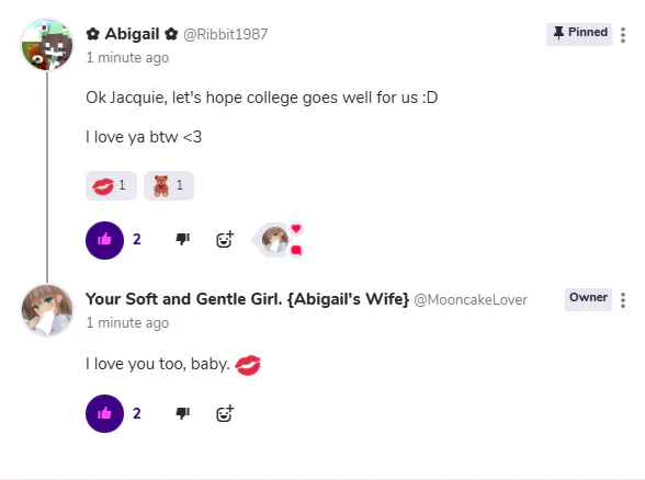 Fun fact: Abigail's internet name is Ribbit1987 (aka the username I'm using rn!) :D