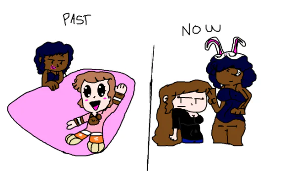 Me in the past and me in the present (my mom really loves wearing her bunny mask.. lmao) :3