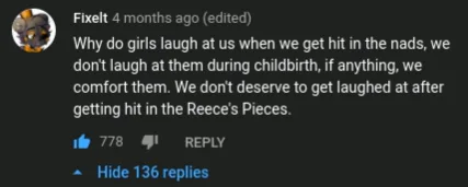 really though, getting hit in the nads leaves this sickening feeling in your gut that i cant describe. the other day my friend and i were joking around and he tapped me there and even that made me feel sick.