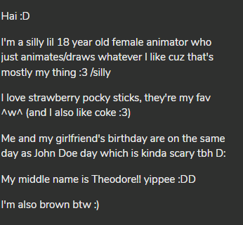 I changed a bit of my bio cuz I felt like changing it :D