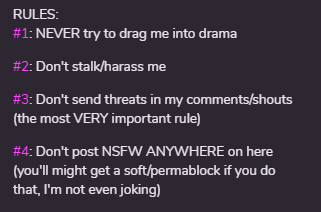 I added rules in my bio cuz I felt like it :3 /silly