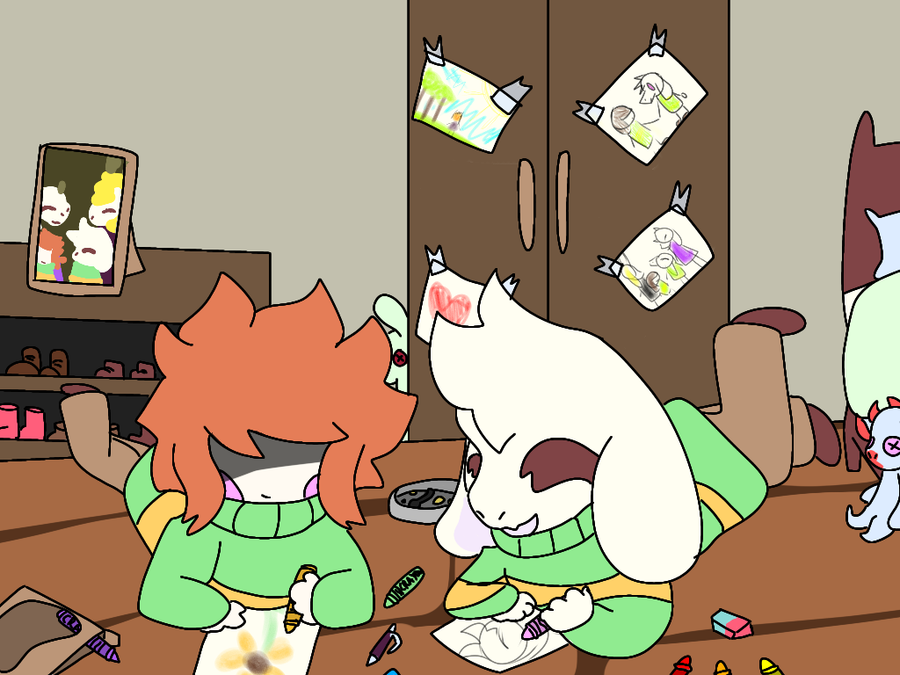 (Chara's drawings don't have an outline, Asriel's have pencil outline)