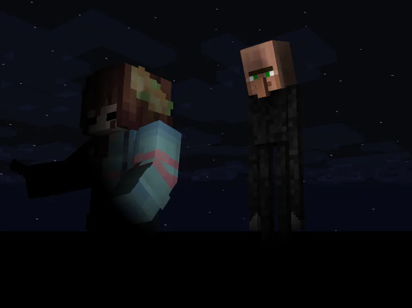 Epic Thumbnail of VABD, it's the exact same as the npcabs topic thumbnail but i made it to minecraft and replaced it with a green villager(obv chase)