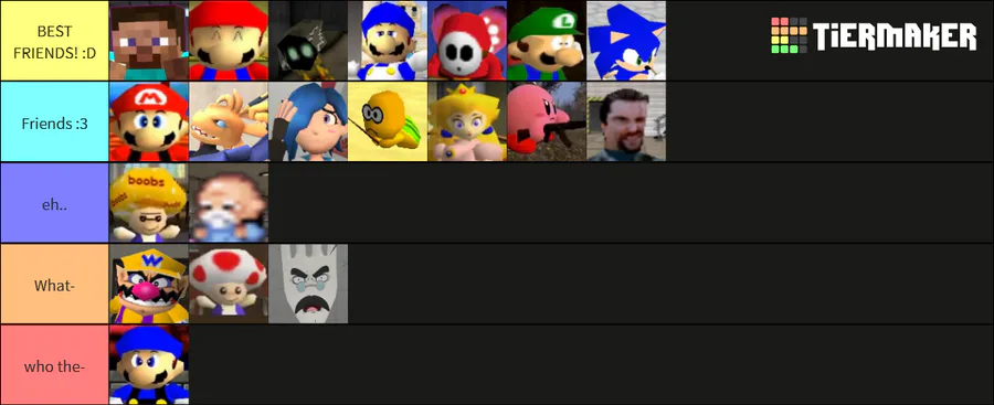 My SMG4 Best Friend Tier List ^w^(If you wanted to know why I putted Steve on The BFFs Tier Is because I LOVE Steve!)