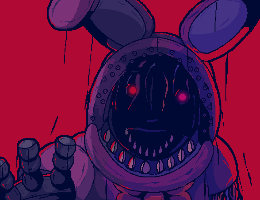I recently hurt my hand so I can't draw at the moment but here's a drawing I made last week of my biggest childhood nightmare, Whitered Bonnie from FNAF 2!