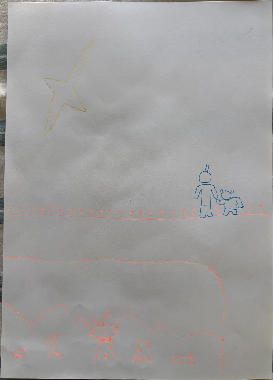 Some drawings I did. Sorry for the bad lighting and camera angels, don't have the means to scan them.