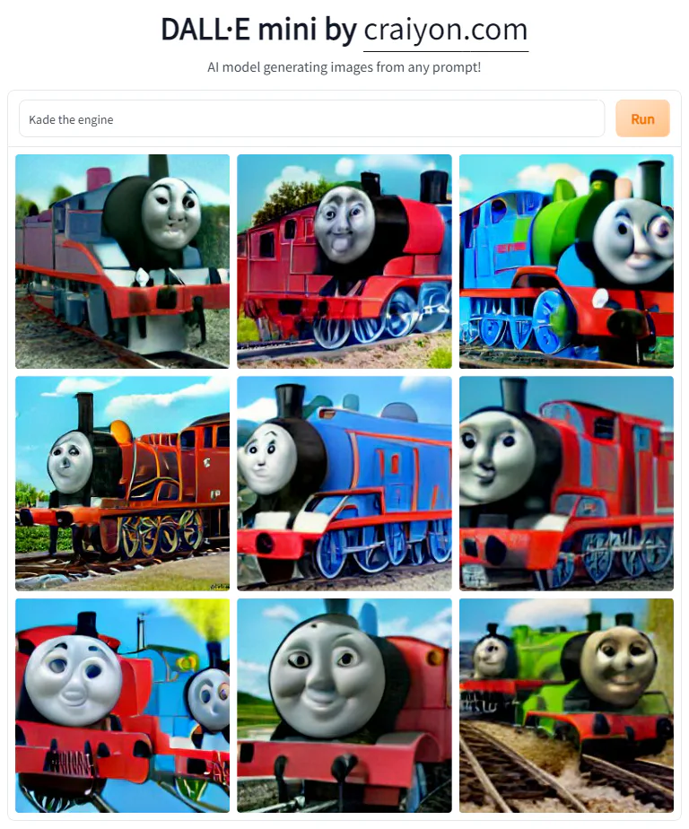 I never had a Thomas and Friends oc so I used an Ai to generate my own Thomas oc. I used Novel ai, Infer kit, Melobytes, and Dall E Mini to generate this oc. I also used Retrostudio to build this oc in 3D. This will be a long thread so please enjoy. (1/3)