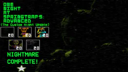 One Night at Springtrap's 1: Advanced (The Custom Night Update) | NIGHTMARE COMPLETE! https://youtu.be/lI3REp2aOMQ