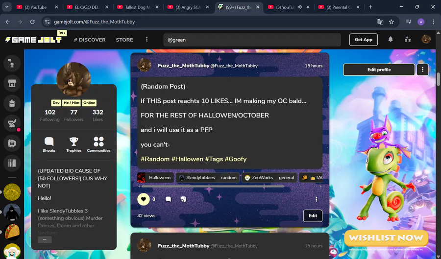 Y'all really wanna see FUZZ bald... tho i don't think two random people will like this post: https://gamejolt.com/p/random-post-if-this-post-reachts-10-likes…