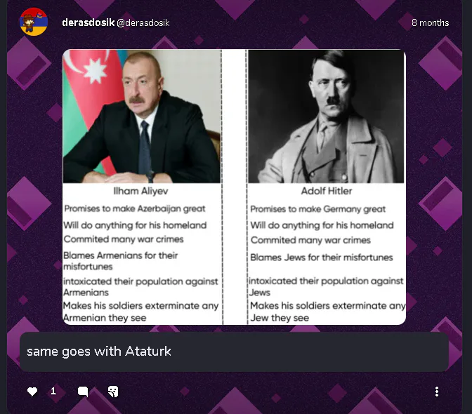 Bu hesabın bu postunu yanlış bilgiden ve nefret söyleminden dolayı reportlayıp engellemenizi tavsiye ediyorum Türk kardeşlerim