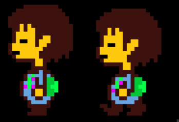 Unytratale chara: Chat emotes1. Base 2. Blink 3. Disappointed4. What? 5. Deep breath 6. Sad7. Chilling 8. Surprised/Meme 9. Bored10. Waiting 11. Happy 12-13. Evil 1