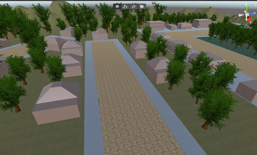 DiseƱo completo del pueblo. Trabajo de naturaleza-