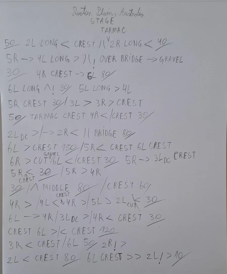 Here are the Rally pace notes that I made