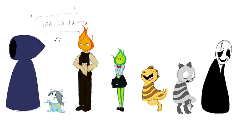 Minha intenção era só desenhar Fuku fire mas penssei em desenhar os outros npcs que adoro também :D