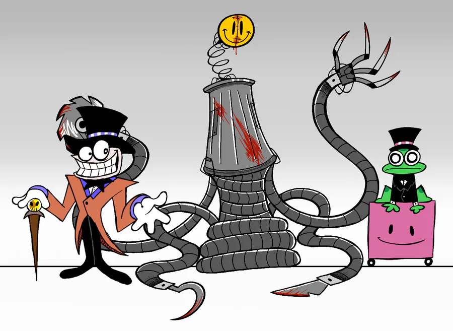 Tin, a circus act now turned to murderous bobble head buzz saw killing machine