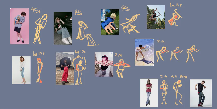 Did a bunch of gesture drawings. If you wanna find the image sources, I suggest cropping it and reverse image search (sorry I can't do better but I'm busy rn)
