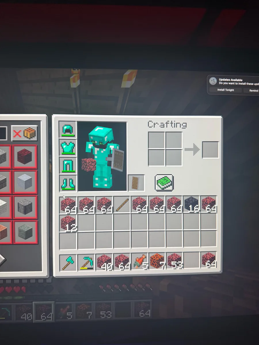 Finish setting up OBS so I can record but also I lost all my diamond armor and stuff yesterday in the neather