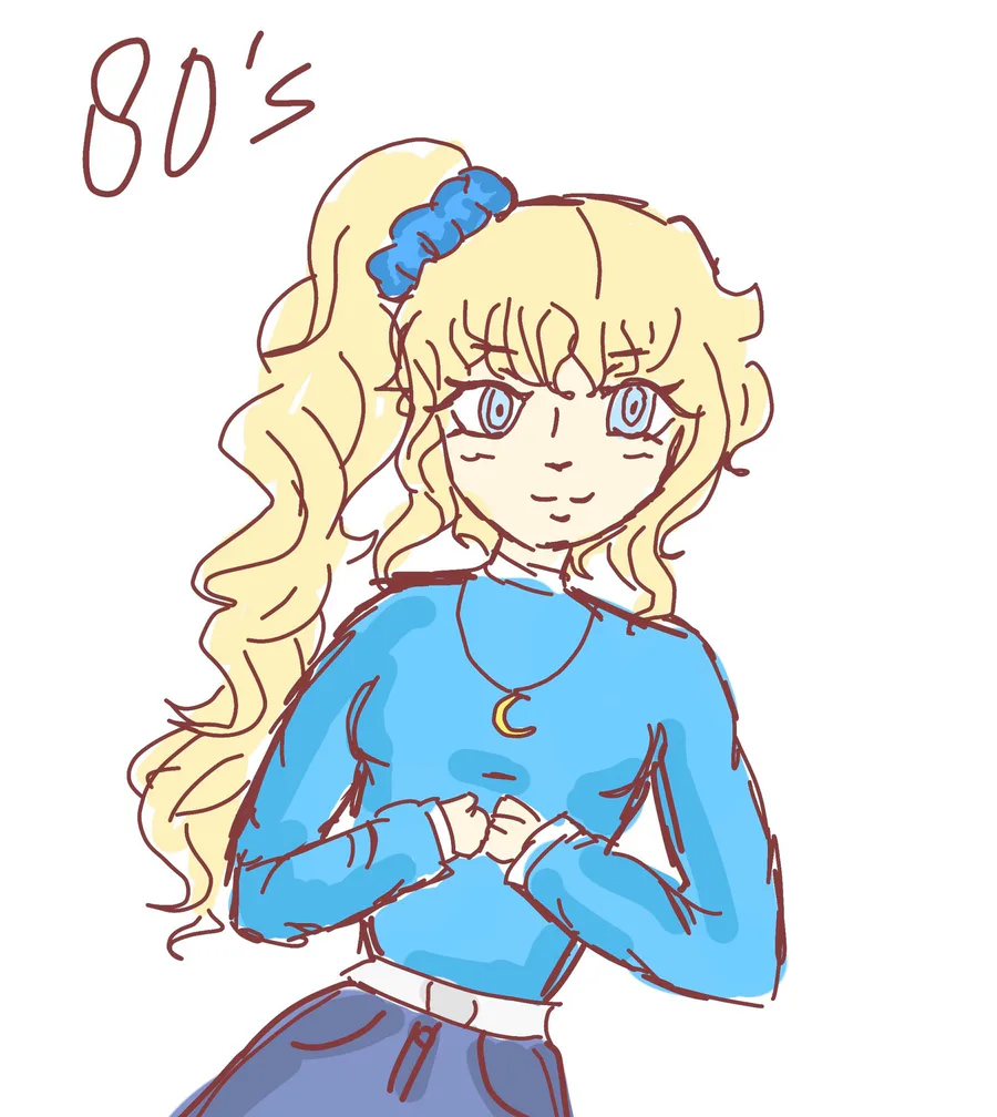 Misaki in 80’s fashion! (Idk if it’s fully accurate I just looked up 80’s fashion :D!)