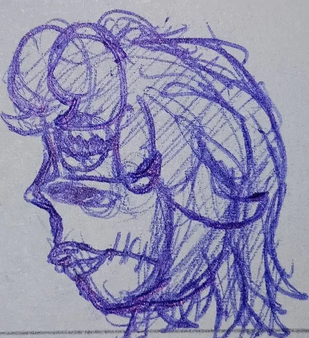 A drawing of one of my OCs. I know it's small, I don't have time to digitize it yet, but it's helping me practice.