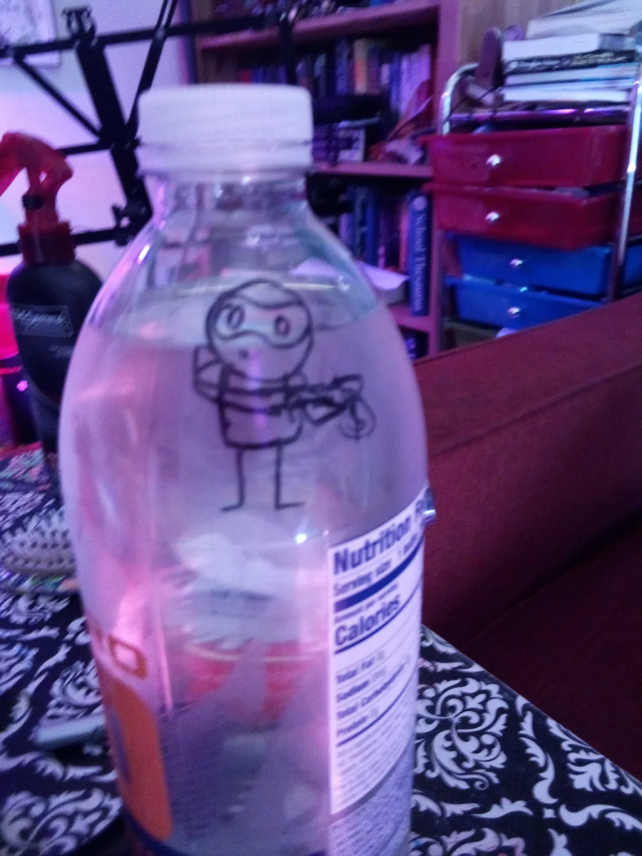 My mom asked me to draw a picture on her water bottle so it doesn't look stolen so I drew a person stealing something