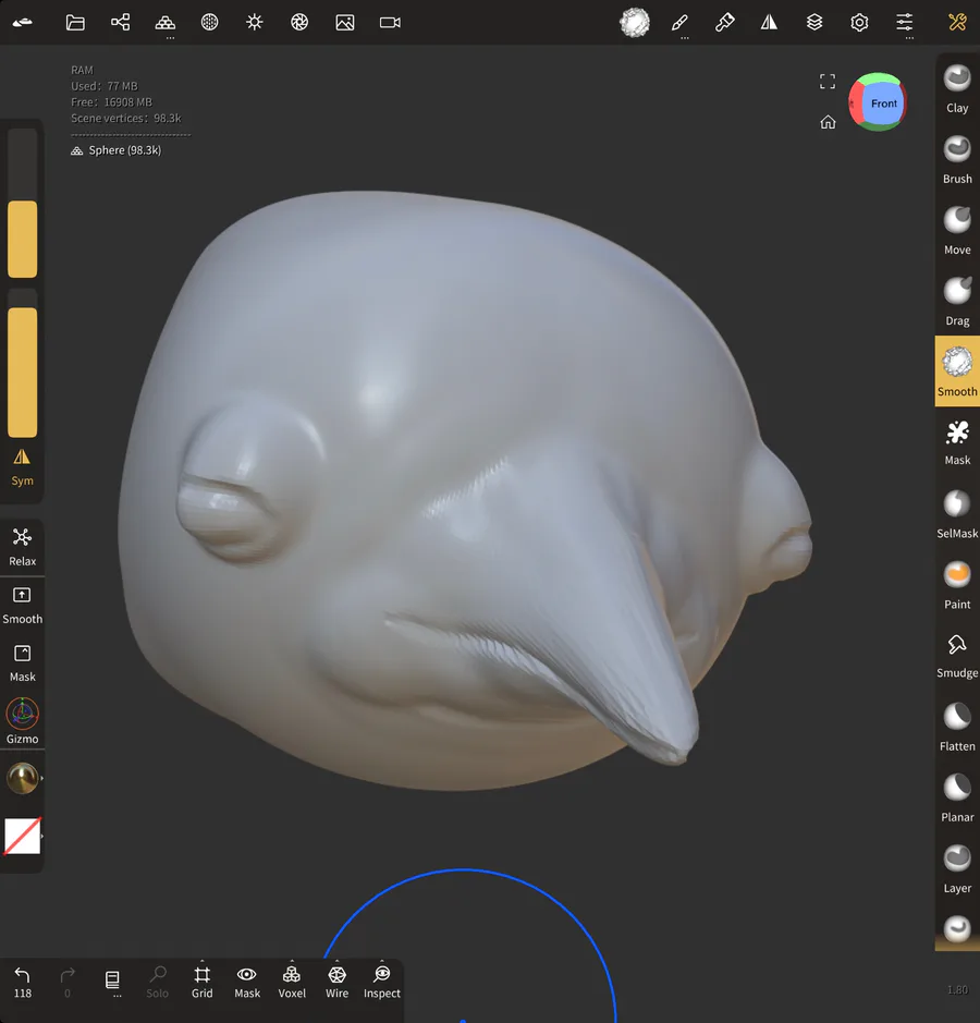 I’m out here baking another donut 🍩 in Nomad Sculpt following a tutorial. ^_^ I would like to add more details this time.