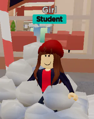 "Girl in stack of snowballs"