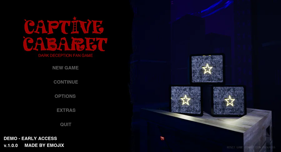 Since I showed the main menu music already I might as well show off the full main menu! It's pretty similar to the one in Retail Rampage but it also has an intro animation, cool background and other stuff behind those pressable looking buttons!