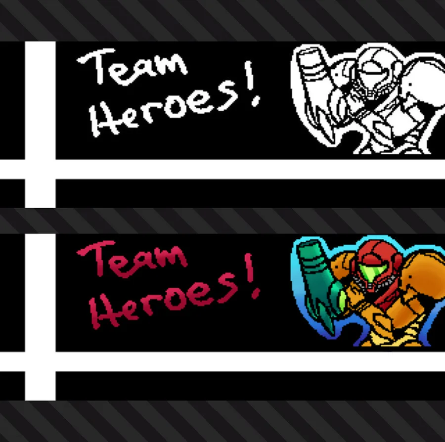 Here's a colored Miiverse drawing I made back in 2018. It was a Super Smash Bros. Splatfest that was Team Heroes vs. Team Villains.