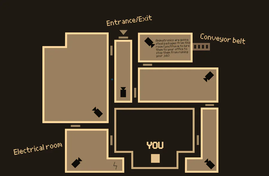 Final map layout of FNaFreadbear's3 warehouse with all rooms and camera positions on it.
