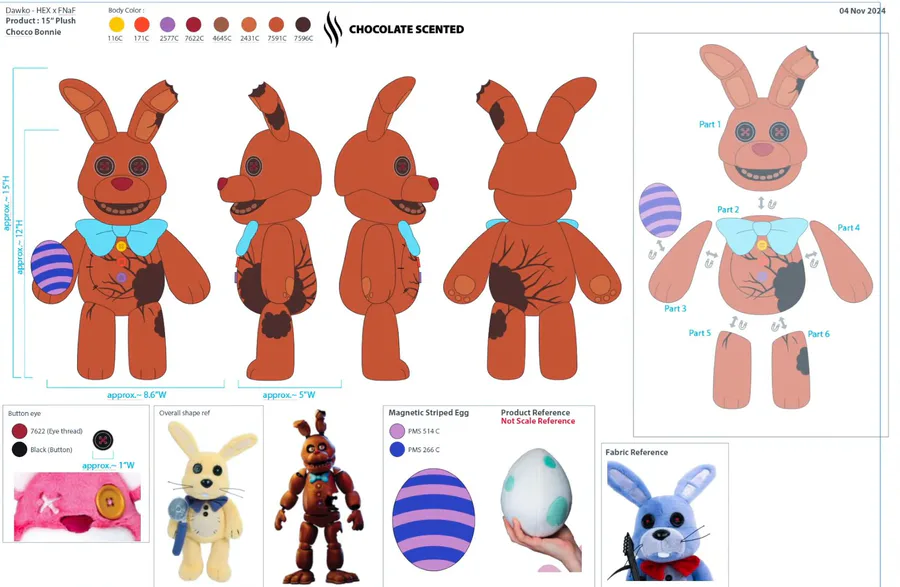 Dawko shows off in his Thankmas 2024 Charity stream our first new look at the chocolate-scented Chocolate Bonnie Hex plush!