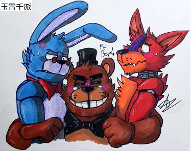 A drawing I (@TheFrebby) just finished with the main stylized Toy Animatronics in @DandyRedPandy 's game Five Nights at Freddy's 2 Reimagined