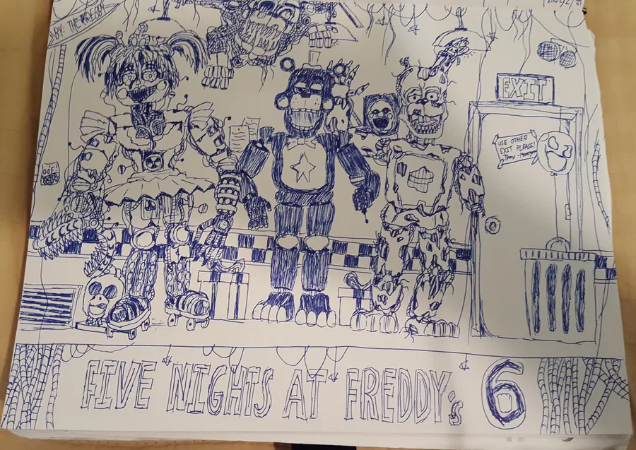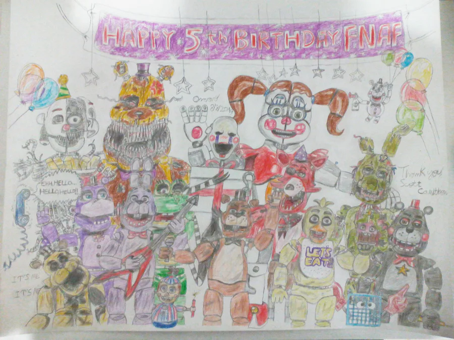 I know i'm late :') but i wanted to show you my 5th anniversary FNaF drawing! ☺ sorry if it looks a bit blurry. 😅
