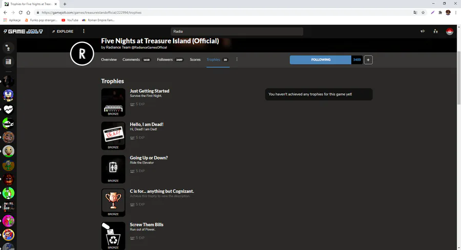 https://www.youtube.com/watch?v=cWipqBkGYDQ why i can't get the trophy from night 1 and i beat it also 2 ?????????