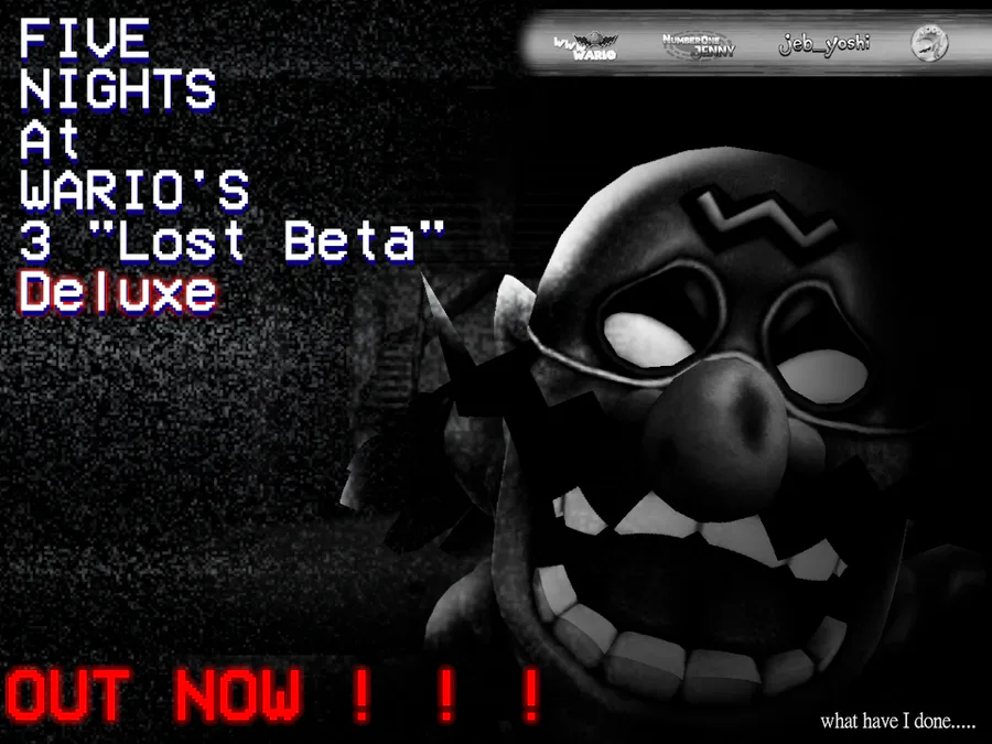 Thanks to the help of TripleWario, NumberOneJenny and Jeb_Yoshi we were able to bring TripleWario's original vision of the end of the trilogy to its full Potential in Five Nights at Wario’s 3 Lost Beta Deluxe.