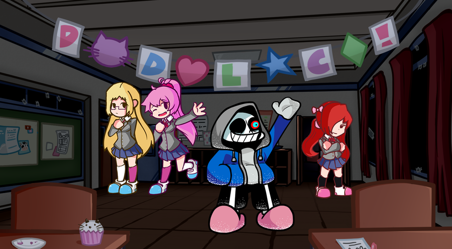 fnf DUSTTALE Sans in doki doki