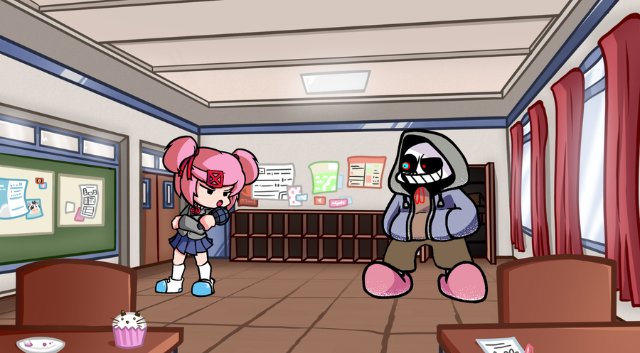 Natsuki X DUSTTALE Sans (Doki Doki) @Goodwitch_Luzura ![]()