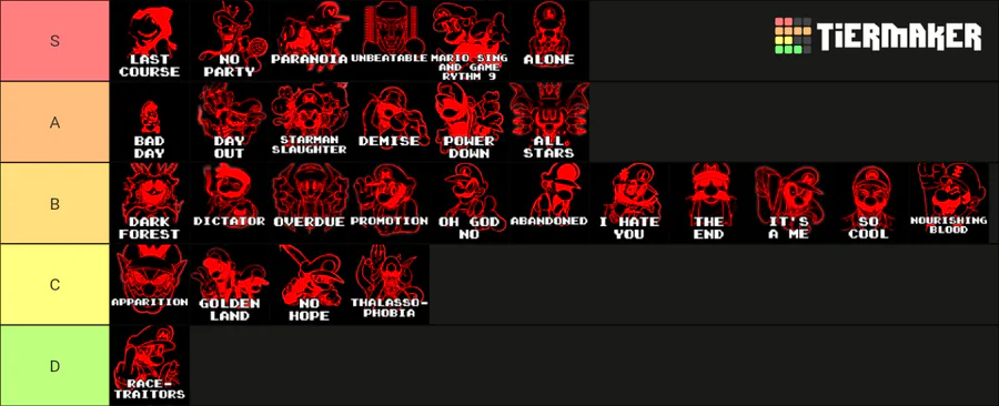 Loading...Mario's Madness was fucking astonishing, one of the best experiences i had playing a fnf mod. I loved the art but if im being honest the music wasnt my cuppa tea, ( except the menu theme dear god i love it ) don't get me wrong, they are VERY good.