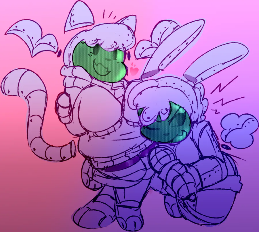 Have an idea I've had living in my head rent-free for a hot minute. Just a pair of virtual pet toy-inspired robot girlfriends! (No names for them yet, but definitely made with FNF as the focus topic.)