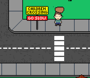 I decided to update the neighborhood by putting pedestrian crossings, street signs, cars and a bit of humor!