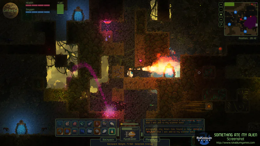 It's #screenshotsaturday and our little Alien is trying to burn his way through the enemy infested (and colourful) caves of Lelantos.