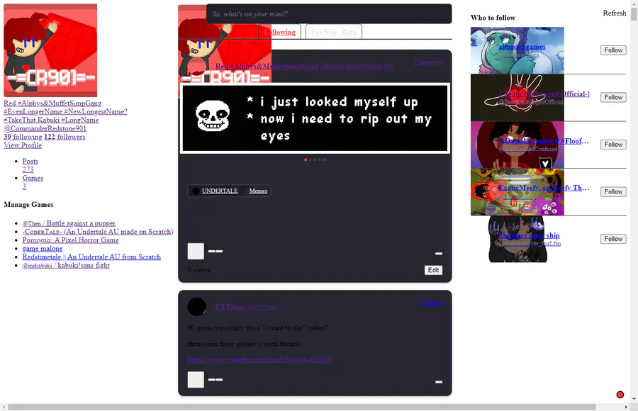 gamejoilt theres a bug a rare one that when you go to a profile page it froze