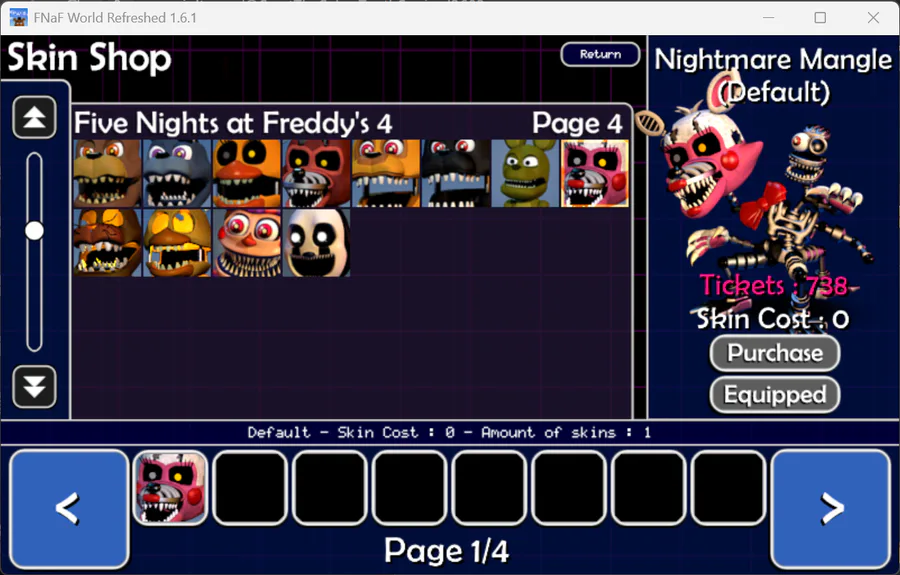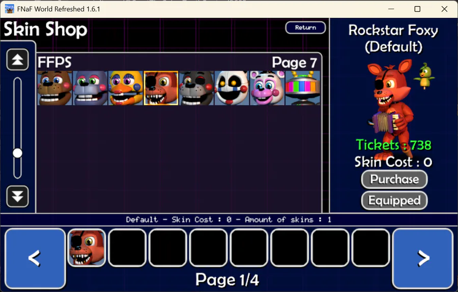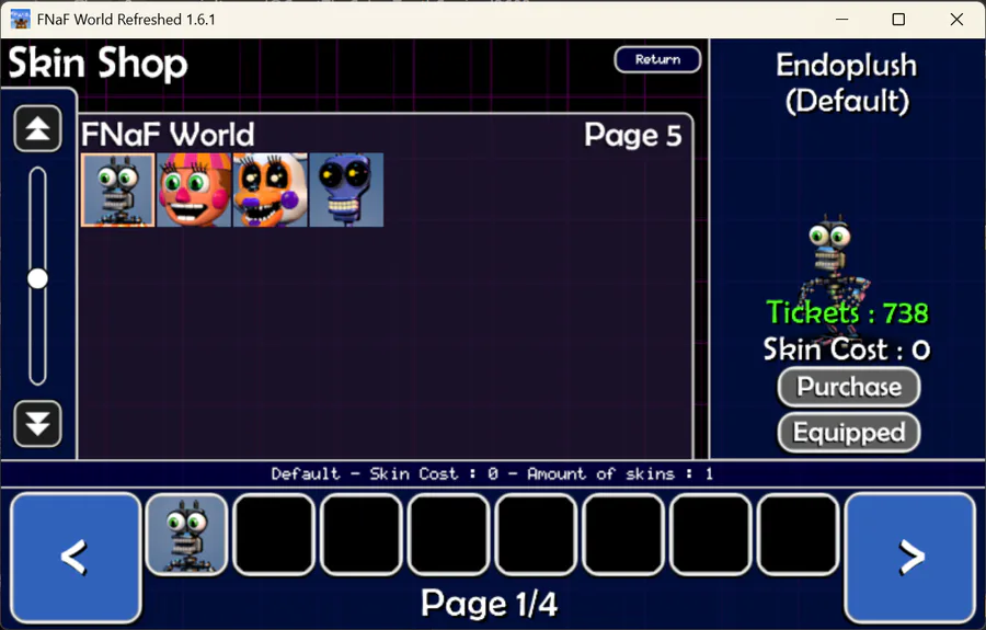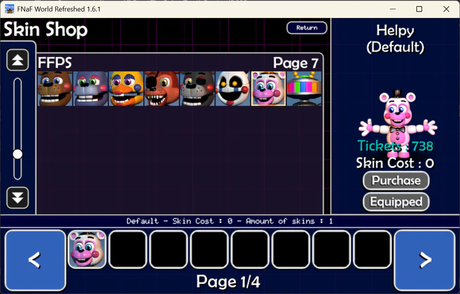 too bad that EndoPlush, Nightmare Mangle, Rockstar Foxy and Helpy don't have new skins to select and buy!🥺