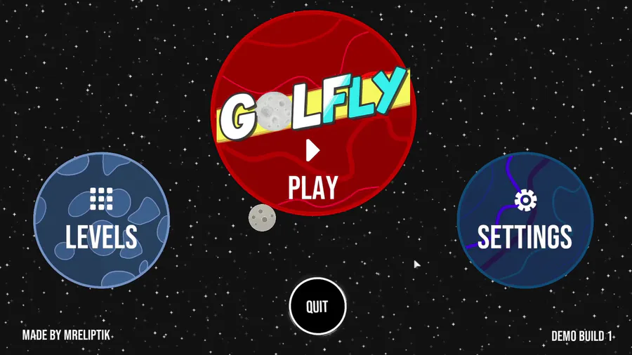 Loading...Golfly's demo is out! Try my 2D minigolf game taking place on tiny planets for free here (https://gamejolt.com/games/golfly/582208) or on itch: https://mreliptik.itch.io/golfly