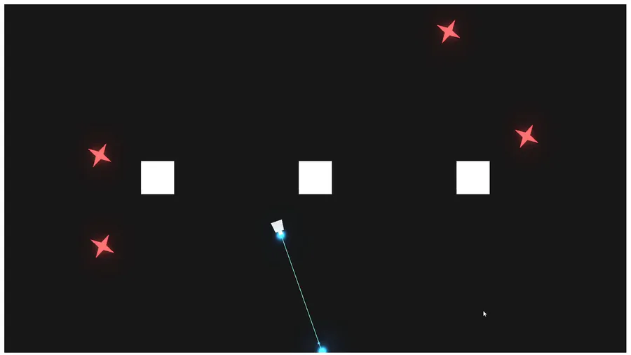 Loading...Small prototype of the day: laser hop. You move backwards each time you shoot the laser. You rotate as long as you're firing the laser. You bounce off things.